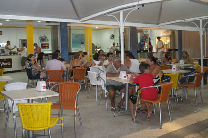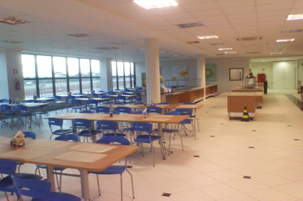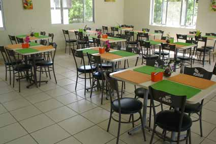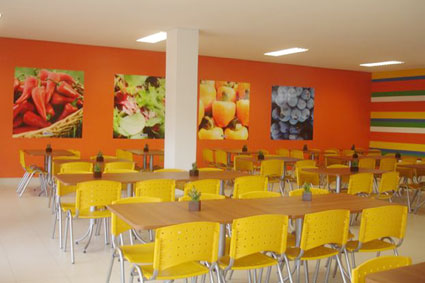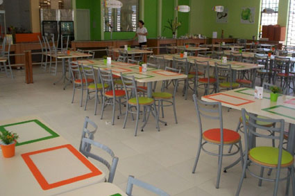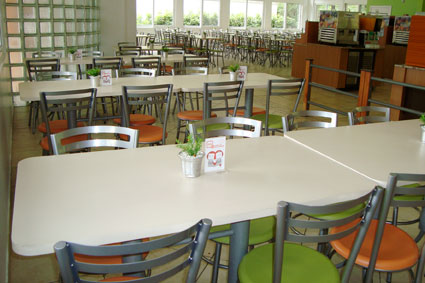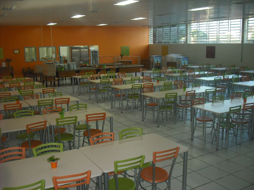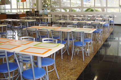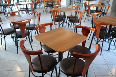 Cadeiras e mesas para refeições coletivas