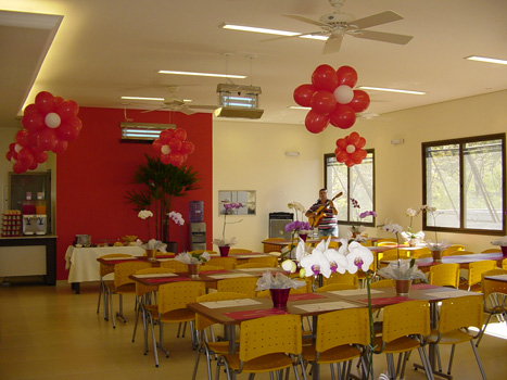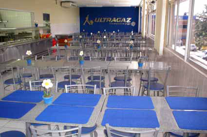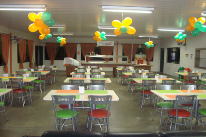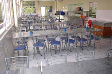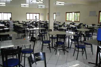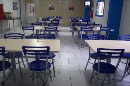 Conjunto de mesas e cadeiras do refeitório da