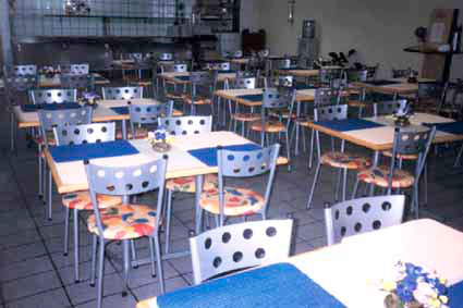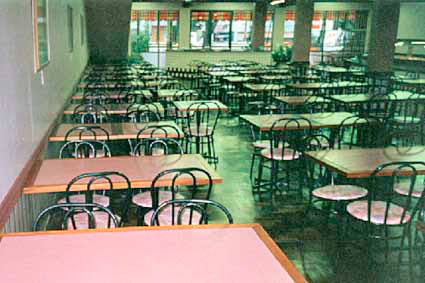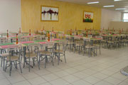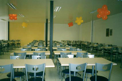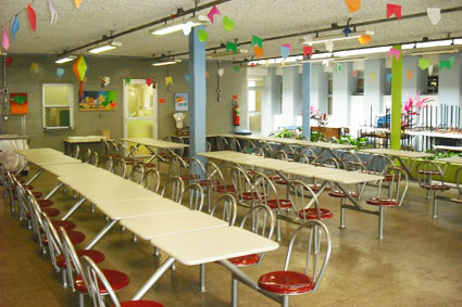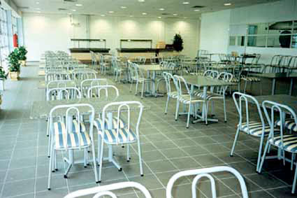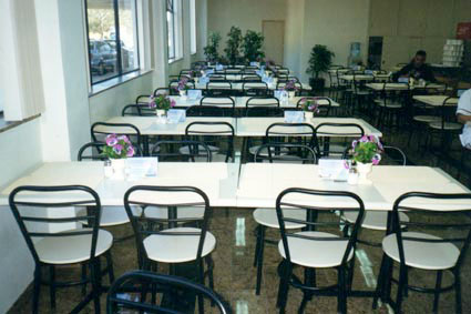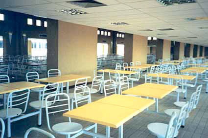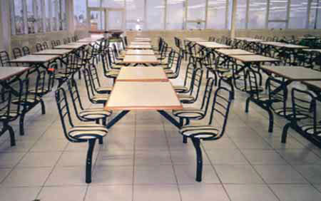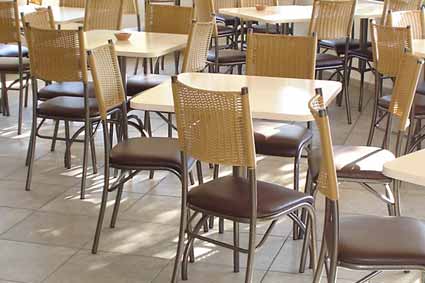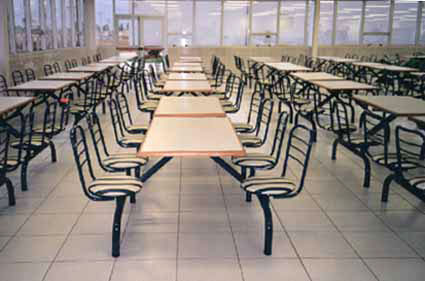 Cadeiras e mesas de refeitório