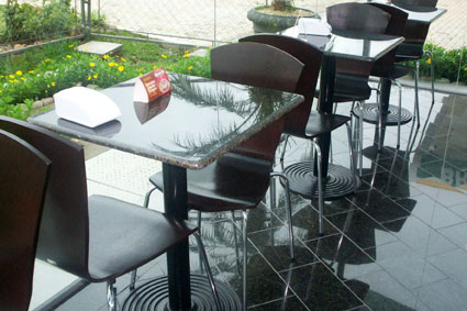 Mesas de granito com cadeiras logomarca
