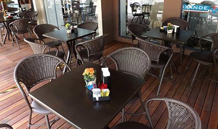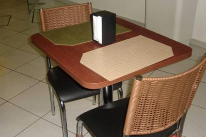 Cadeiras em ratan e mesas em MDF para restaurantes