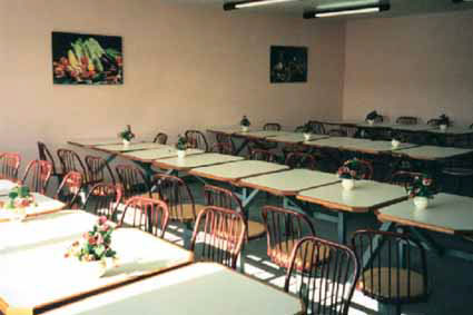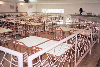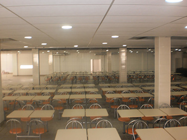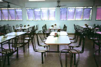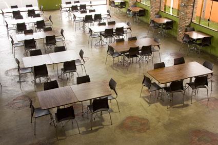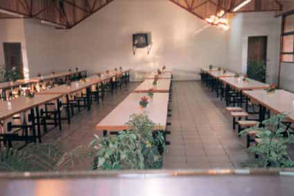 Mesas e cadeiras em refeitórios