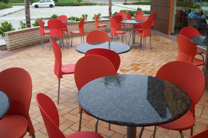 Mesas de granito com cadeiras milano para o cliente