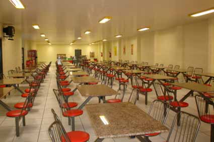 Mesas fixas usadas em refeitórios industriais