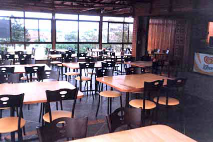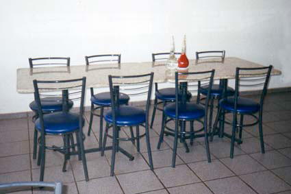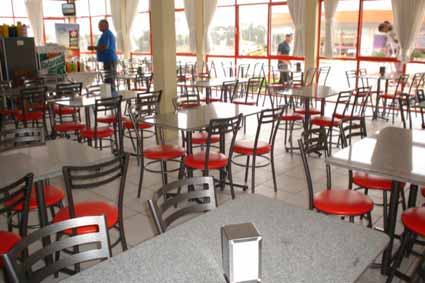 Mesas e cadeiras usadas em lanchonetes de postos de gasolina