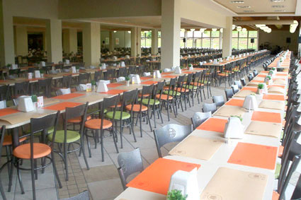 Mesas e cadeiras para refeitórios coletivos
