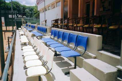 Mesas em granito fixas com cadeiras acopladas