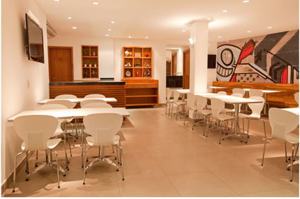 Mesas e cadeiras para refeição coletiva